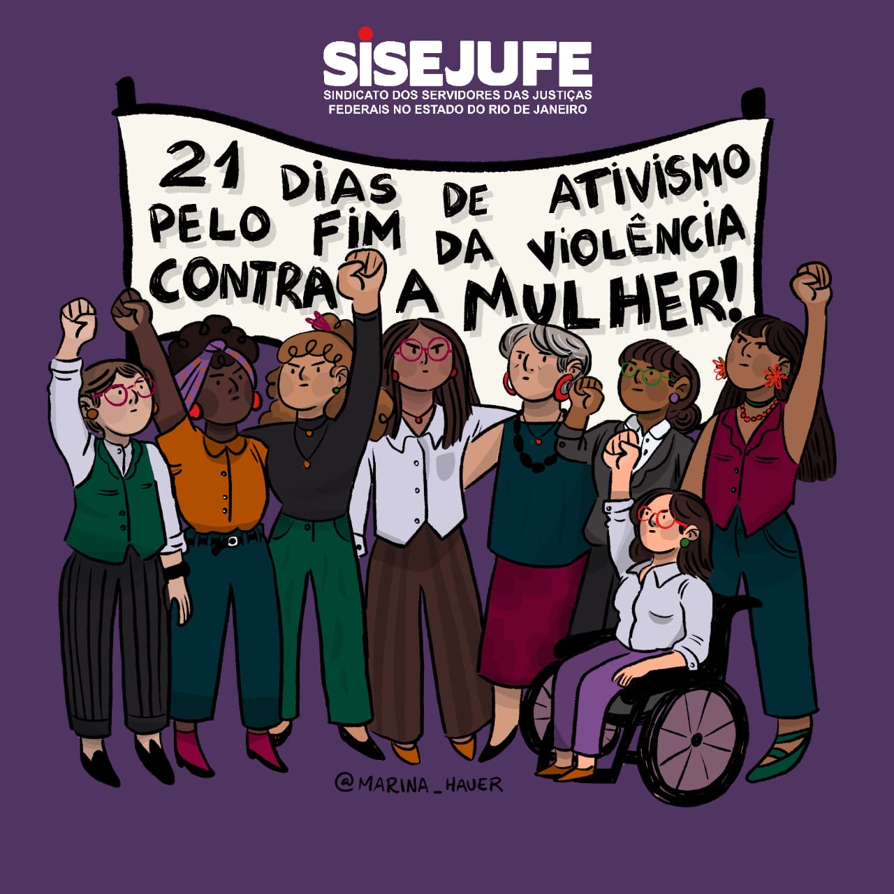 Os 21 Dias de Ativismo pelo Fim da Violência contra as Mulheres são um chamado global para conscientizar as pessoas sobre os diferentes tipos de agressão contra meninas e mulheres. A campanha envolve a sociedade civil e o poder público, e o Sisejufe se une ao movimento para reafirmar o compromisso com uma sociedade mais justa, segura e igualitária.