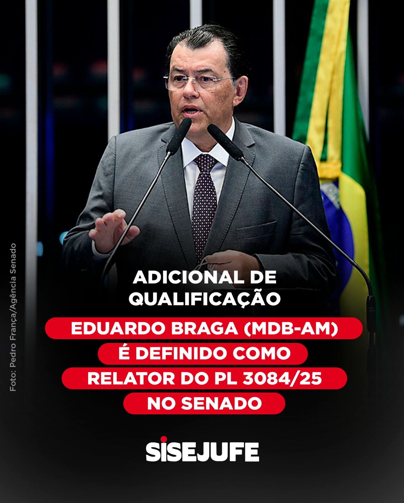O senador Eduardo Braga (MDB-AM) aceitou a relatoria após reunião com a Fenajufe na manhã desta terça-feira (18/11). O PL se encontra na Comissão de Constituição e Justiça (CCJ) do Senado e pode ser apreciado na sessão da próxima semana.