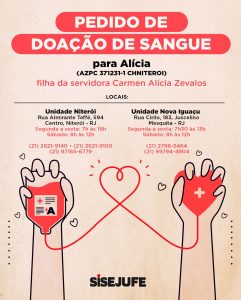 ⚠️O atendimento aos sindicalizados e sindicalizadas está sendo feito pelo WhatsApp (21) 96784-6781 ou por meio do e-mail contato@sisejufe.org.br
