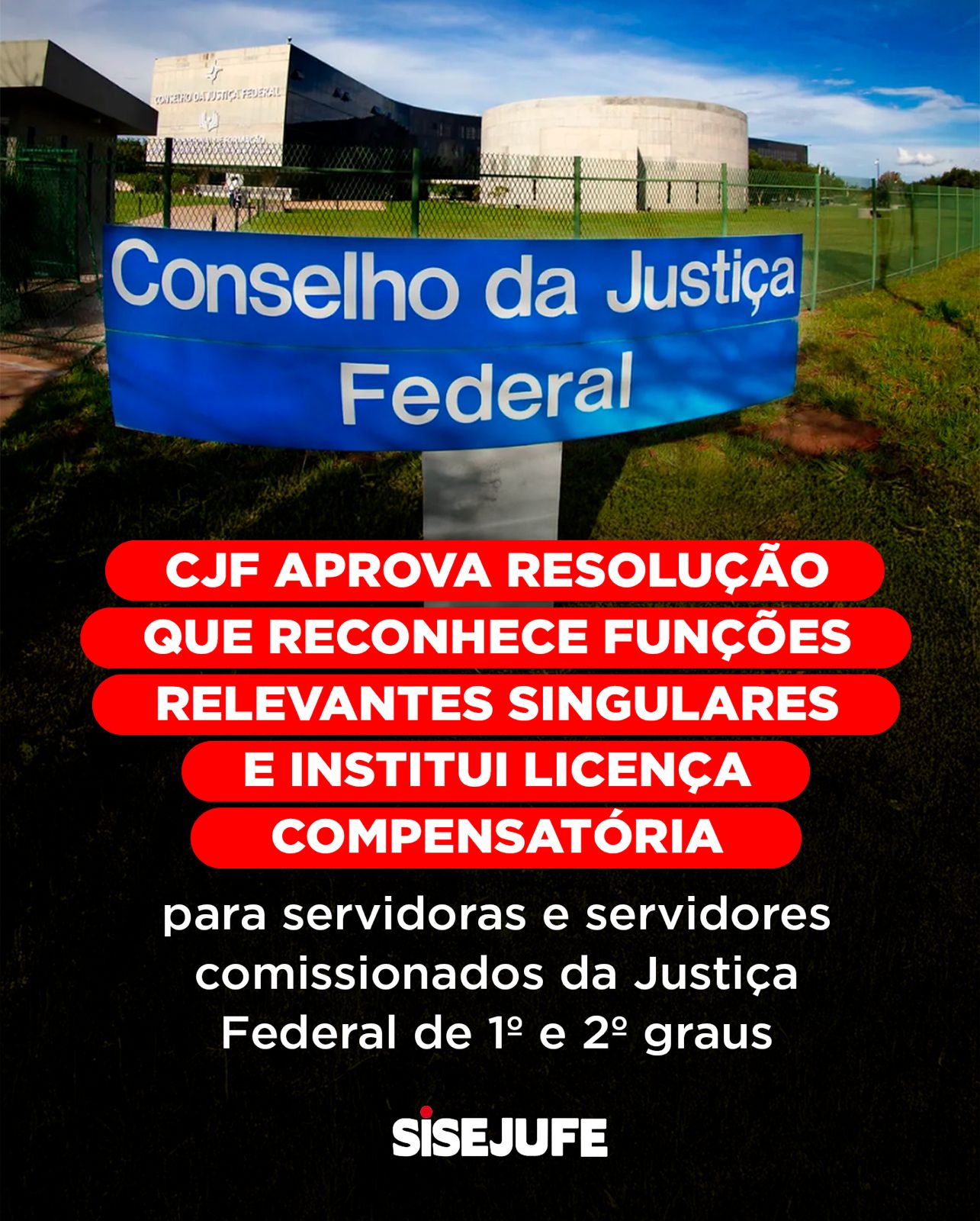 O Conselho da Justiça Federal aprovou, por unanimidade, resolução que regulamenta o reconhecimento das chamadas “funções relevantes singulares” exercidas por servidoras e servidores ocupantes de cargos em comissão CJ-4, CJ-3 e CJ-2 na Justiça Federal de 1º e 2º graus, autorizando a concessão de licença compensatória de até quatro dias por mês.