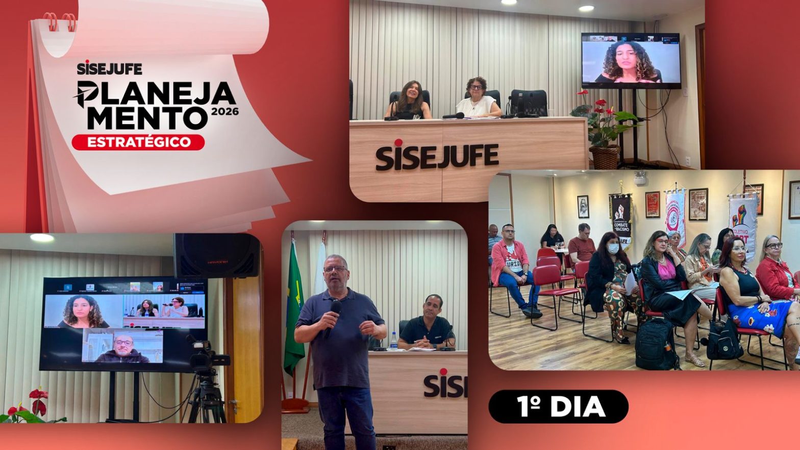 O Planejamento Estratégico do Sisejufe aconteceu nos dias 17 e 18 de outubro, em formato híbrido, com a parte presencial no auditório do Sisejufe. O primeiro dia foi dedicado às reflexões sobre conjuntura e reforma administrativa, com mediação da presidente do sindicato, Lucena Pacheco Martins; e da diretora Soraia Marca, que é também coordenadora-geral da Fenajufe.