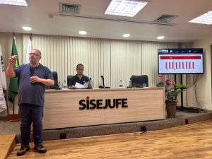 A coordenadora-geral da Fenajufe, Soraia Marca, explicou a atuação da Federação e a luta para garantir avanços das negociações da reestruturação da carreira; a dirigente também falou dos projetos que tramitam no Congresso Nacional, como o AQ.