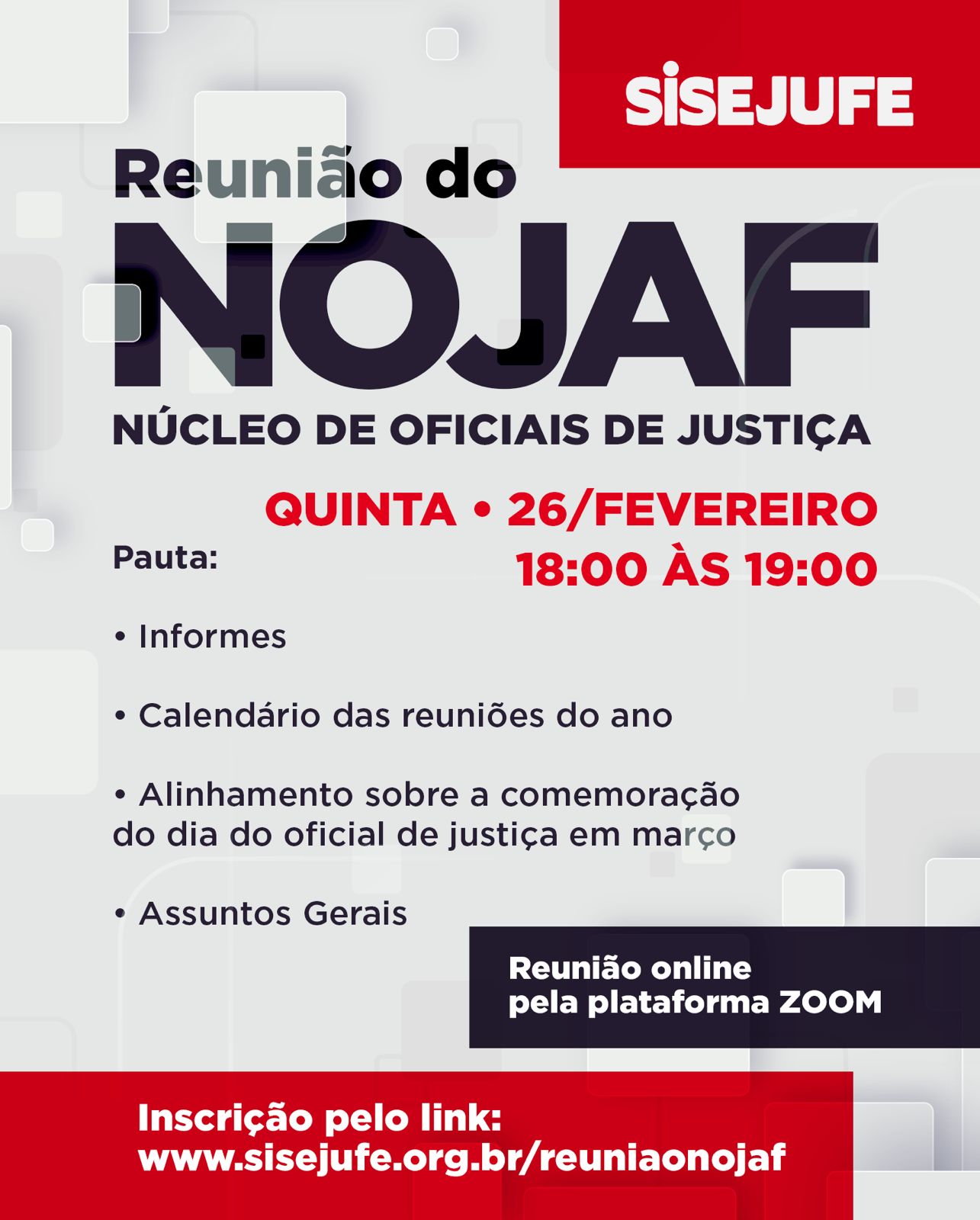 O Núcleo dos Oficiais de Justiça Avaliadores Federais do Sisejufe (Nojaf) convida o oficialato do Rio de Janeiro para a primeira reunião do ano.
