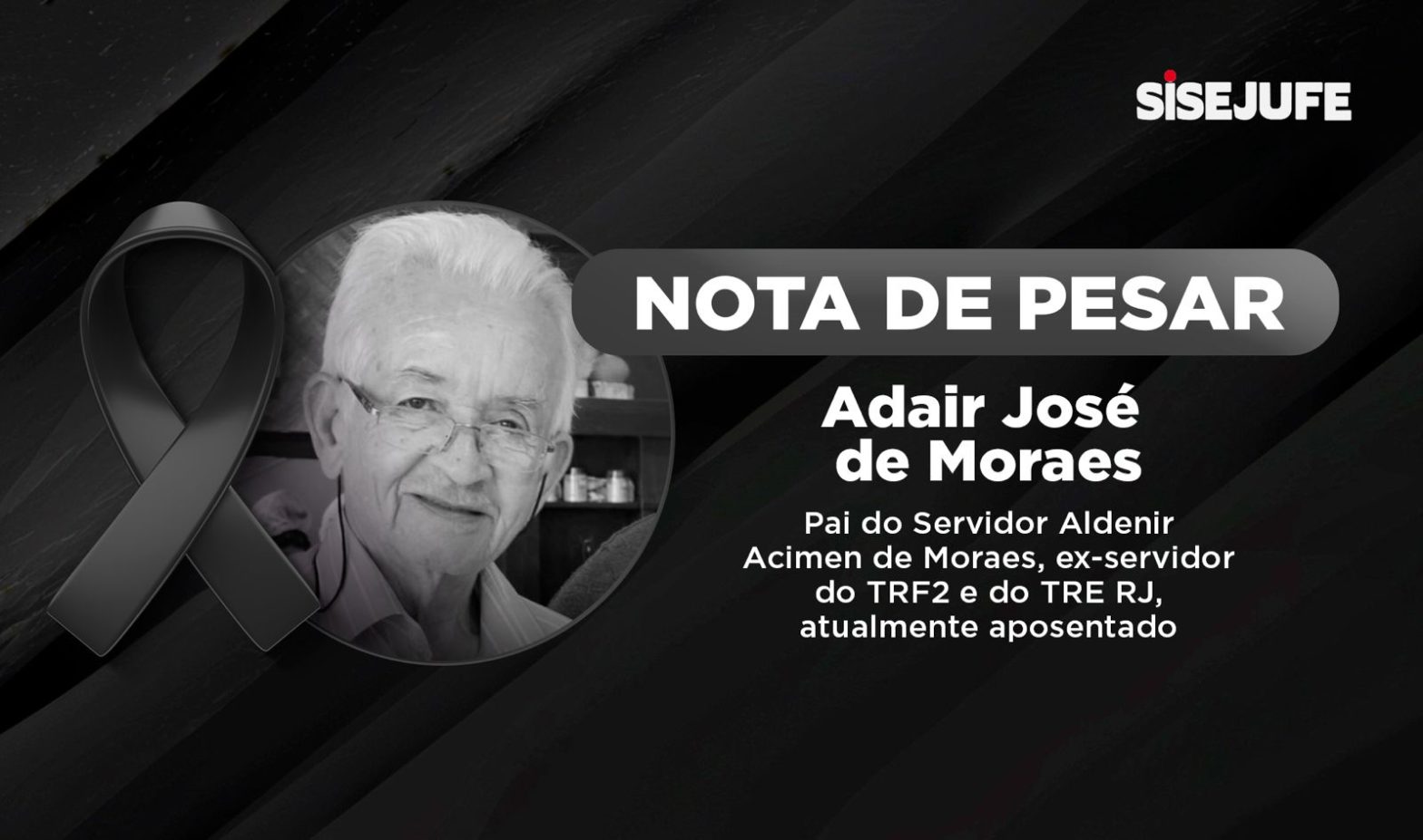 O Sisejufe informa, com pesar, o falecimento de Adair José de Moraes, pai do servidor aposentado do TRF2, Aldenir Acimen de Moraes.
