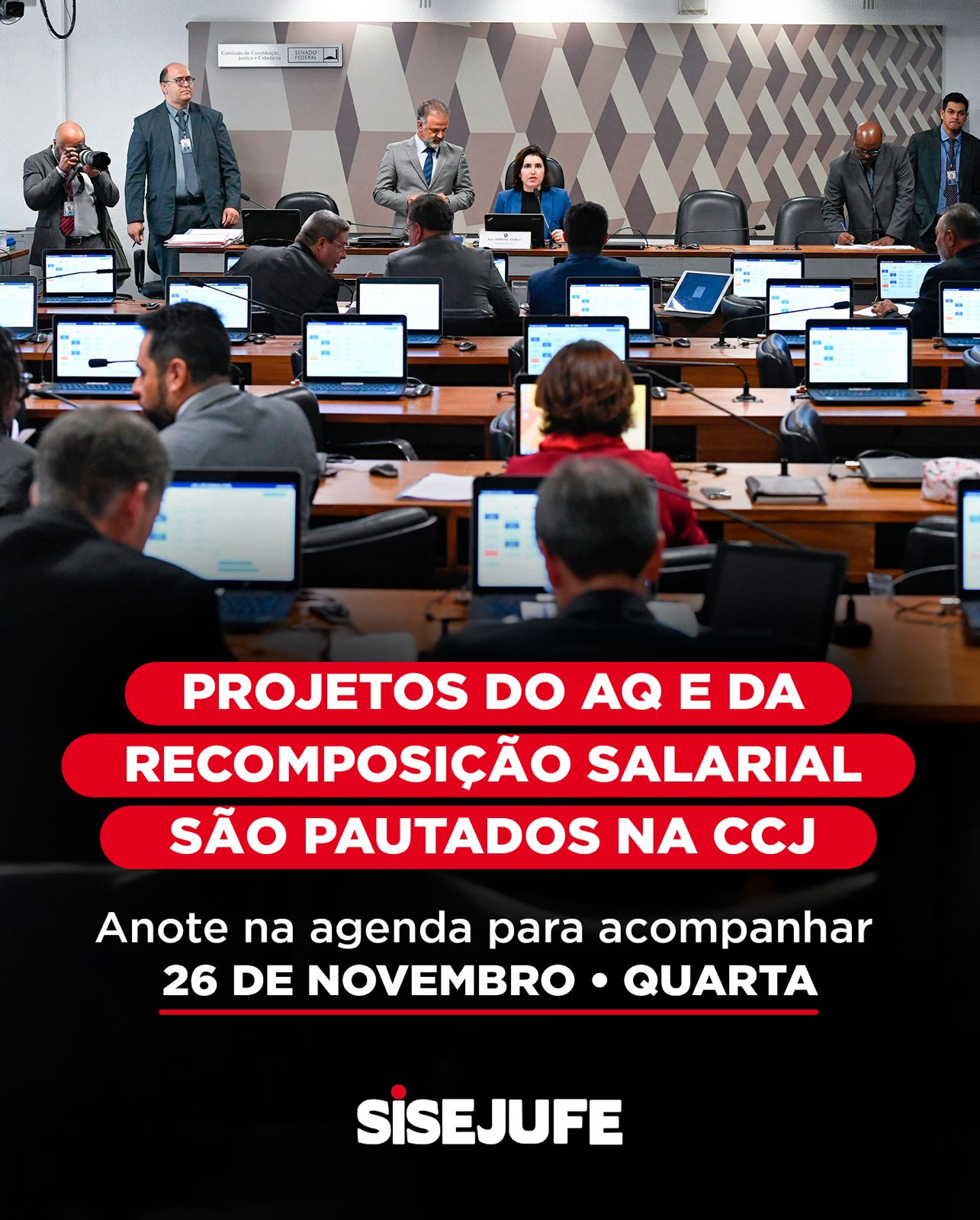 Os projetos que tratam do Adicional de Qualificação (AQ) e da recomposição salarial das carreiras do Poder Judiciário da União (PJU) deram um passo importante no Senado Federal. As informações são do assessor parlamentar e institucional do Sisejufe, Alexandre Marques.
