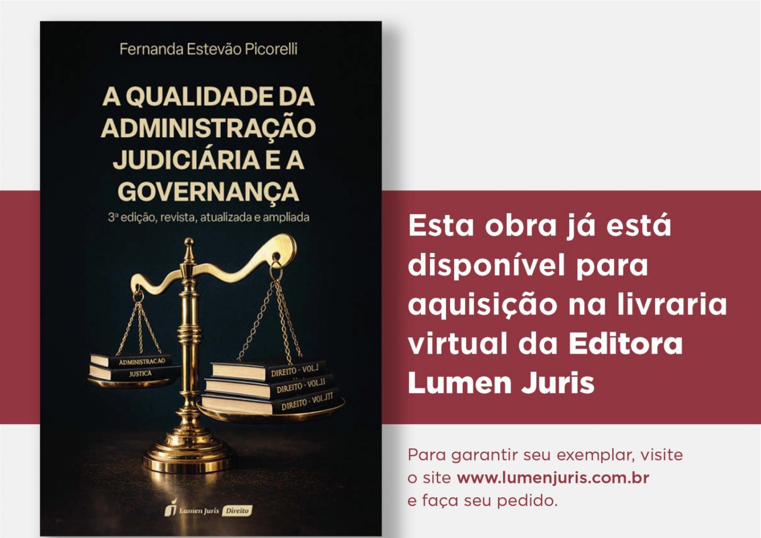 A doutoranda em Direito Público da Universidade de Coimbra, mestra em Direito Público e Evolução Social e especialista em Poder Judiciário (MBA/FGV), Fernanda Estevão Picorelli, também servidora sindicalizada ao Sisejufe, apresenta a 3ª edição, atualizada e ampliada, da obra “A Qualidade da Administração Judiciária e a Governança”. A primeira edição, publicada em 2013 sob o título “A Qualidade da Administração Judiciária e a Governança como propulsores da efetividade jurisdicional”, inaugurou uma reflexão pioneira sobre a relação entre governança, gestão judiciária e efetividade da prestação jurisdicional. A segunda edição, lançada em 2021, consolidou e aprofundou o debate, acompanhando a evolução normativa e institucional do Poder Judiciário brasileiro.