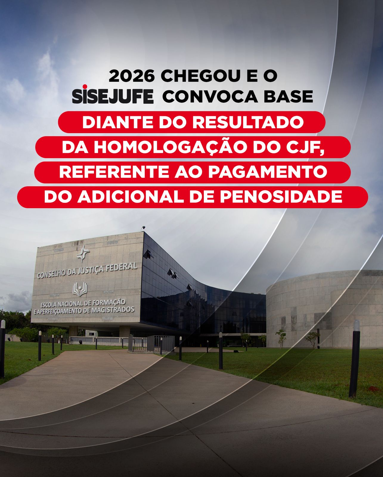 2026 já chegou, e o Sisejufe volta a convocar a base diante resultado da homologação e da possibilidade de reabertura da discussão sobre a lista de localidades consideradas de difícil provimento para fins de pagamento do Adicional de Penosidade, em fevereiro, o Sisejufe/RJ convoca a participação da base para atuar na defesa da mesma base de cálculo do adicional e critérios mais adequados à realidade do estado do Rio de Janeiro, considerando suas especificidades territoriais, sociais e institucionais. Vem entender do que estamos falando e porquê sua participação é importante!