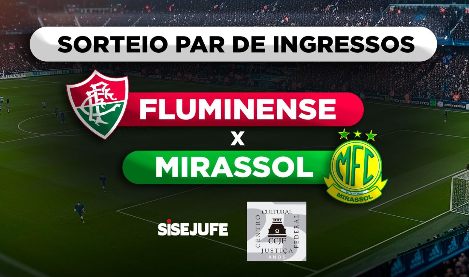 Mais uma oportunidade para quem curte futebol! O Sisejufe, em parceria com o Centro Cultural Justiça Federal, sorteará um par de ingressos para o jogo desta noite (06/11) entre Fluminense e Mirassol que vai acontecer no Maracanã, às 19h30.