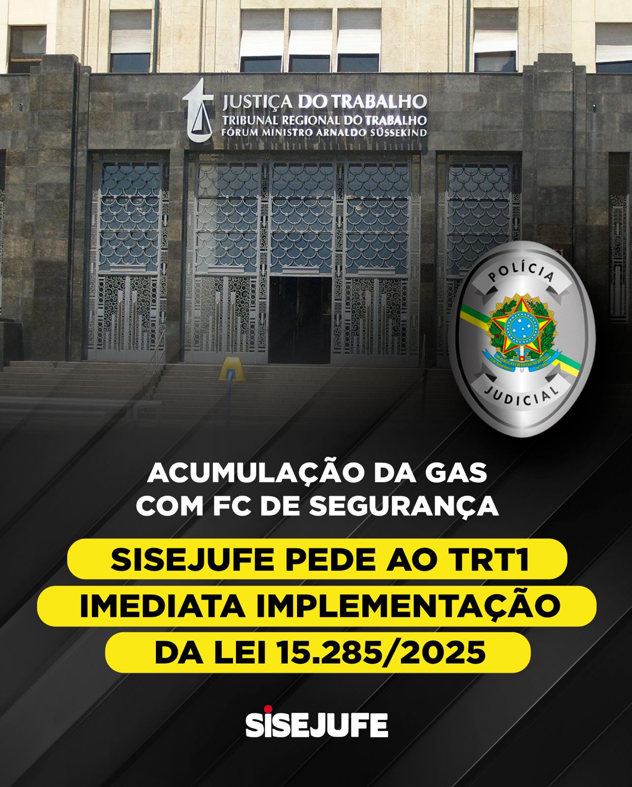 Considerando as alterações legislativas trazidas pela Lei 15.285/2025 que, dentre outras medidas, autorizaram a acumulação da Gratificação de Atividade de Segurança (GAS) com função comissionada ou cargo em comissão, quando as atribuições envolvam segurança institucional e lotação nas unidades de segurança, o Sisejufe enviou ofício ao TRT da 1ª Região questionando o Tribunal sobre a implementação das inovações legislativas.