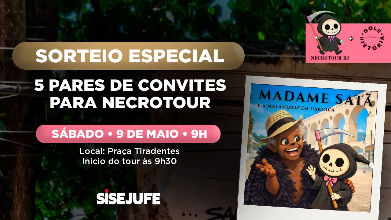 Que tal um passeio histórico pelo coração da cidade? O Sisejufe, em parceria com o Necrotour RJ, e a página Gole de História, realiza o sorteio de 5 pares de ingressos, para servidores e servidoras sindicalizadas e seus respectivos acompanhantes, para conhecer as histórias de Madame Satã e do universo da malandragem carioca, que marcou o Rio de Janeiro nas primeiras décadas do século XX. O tour será realizado no sábado, dia 9 de maio, com ponto de concentração na Praça Tiradentes, às 9h, com início marcado para 9h30.