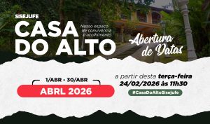 23/02/26 Sisejufe abrirá reservas para o mês de ABRIL, na Casa do Alto Sistema estará disponível nesta terça-feira, 24 de fevereiro, a partir das 11h30