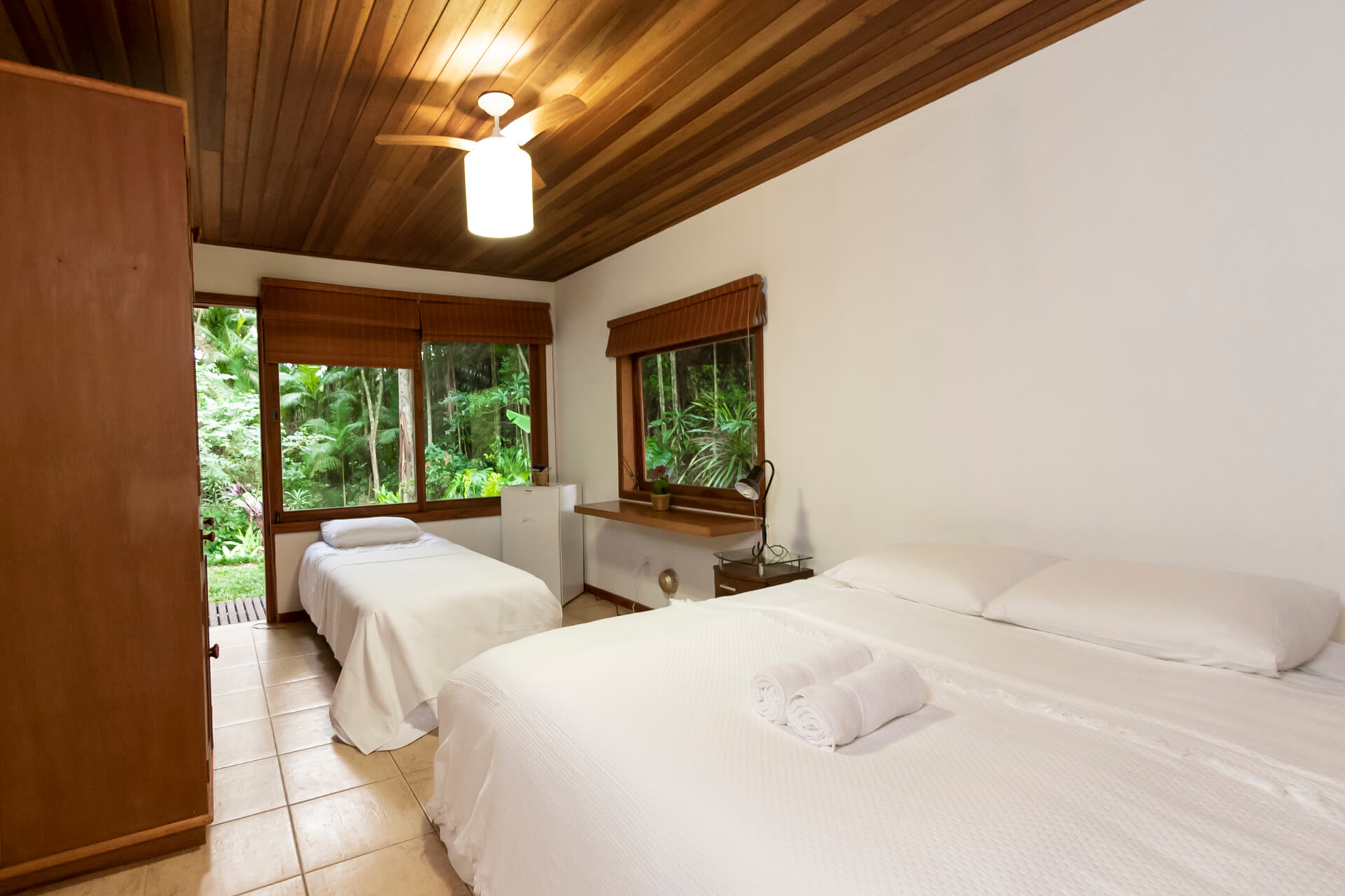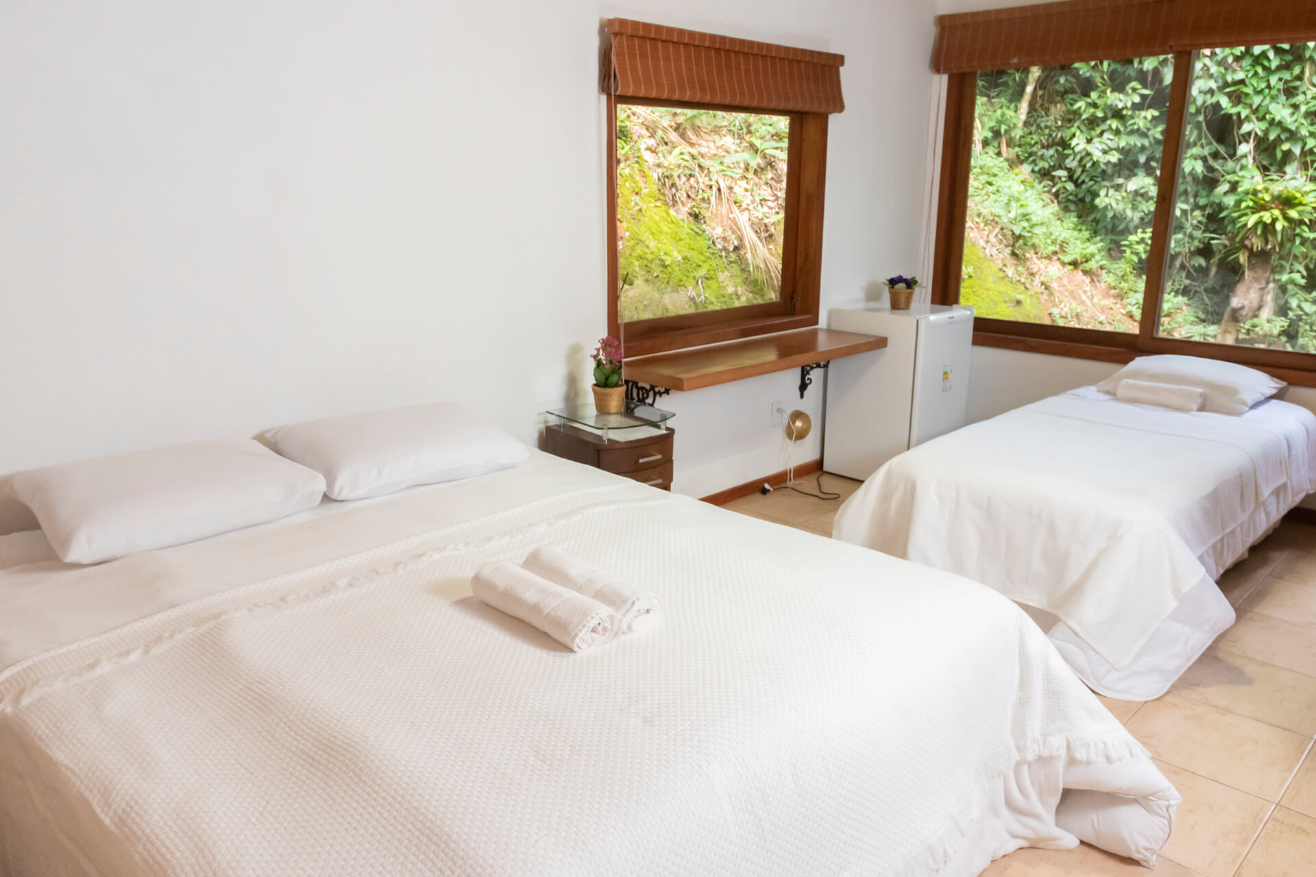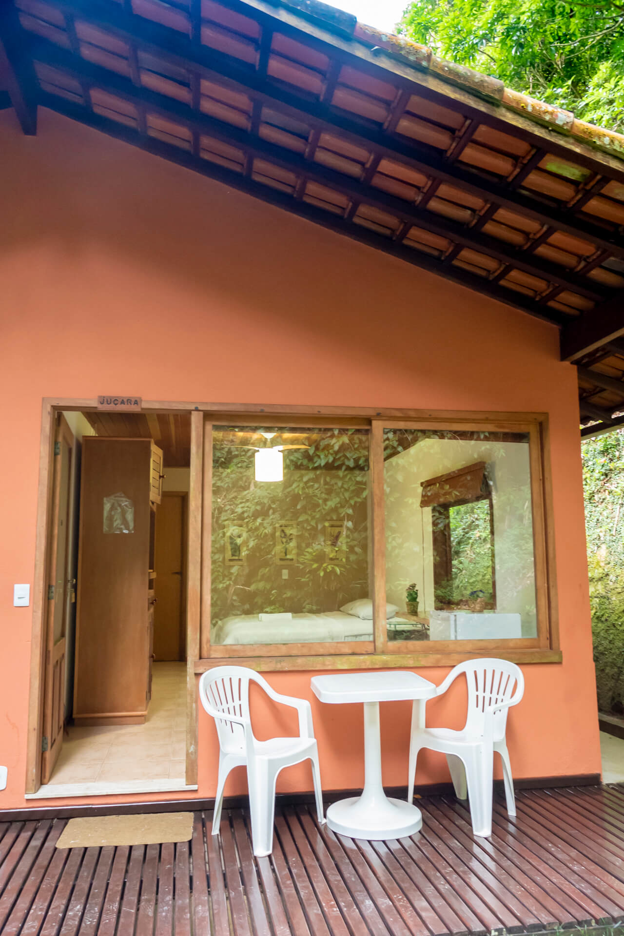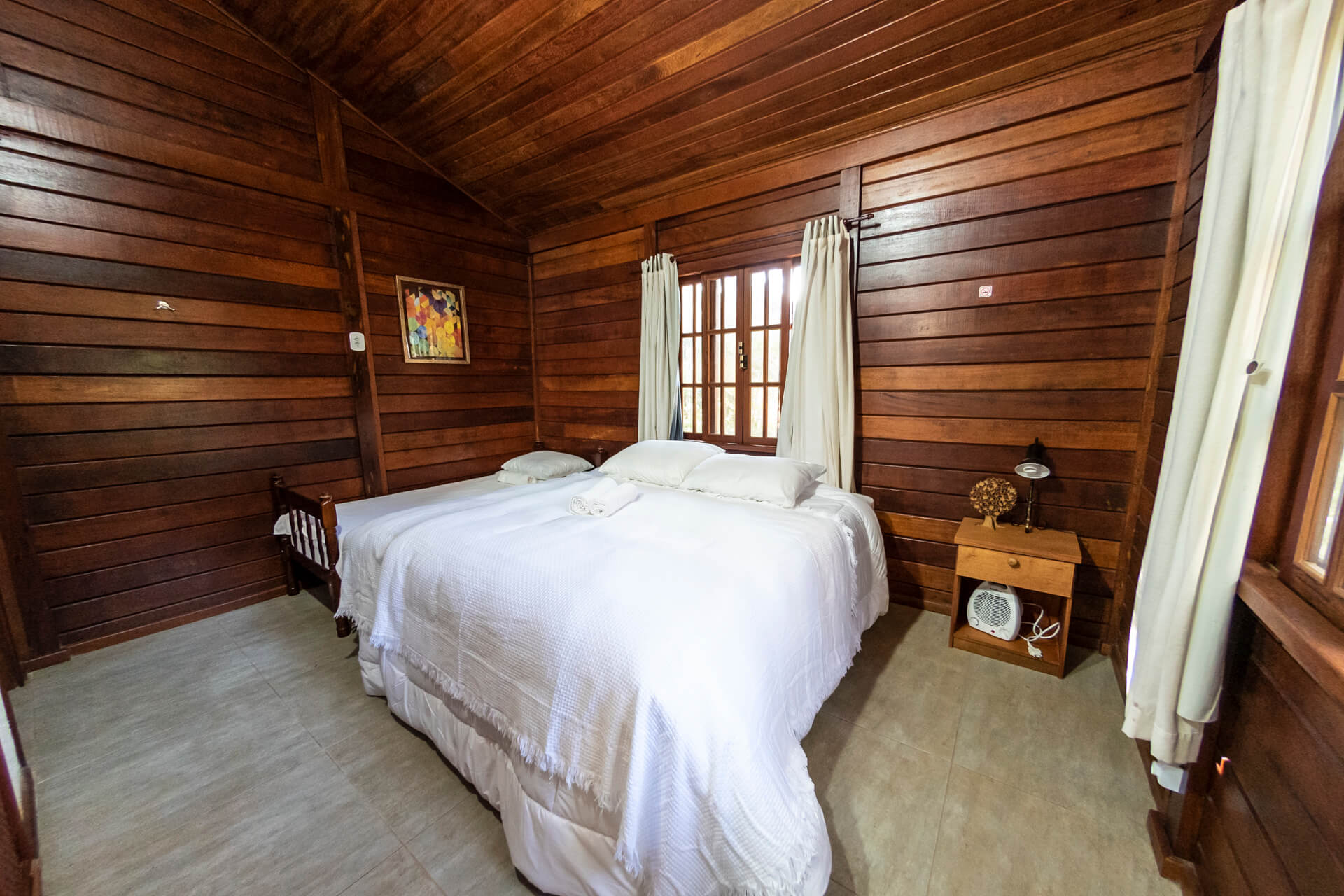 São quatro chalés com duas suítes, com entradas independentes, podendo ser reservadas juntas. Destes, três contam com mini copa equipados com microondas, frigobar, pia e utensílios (pratos, talheres e copos).
