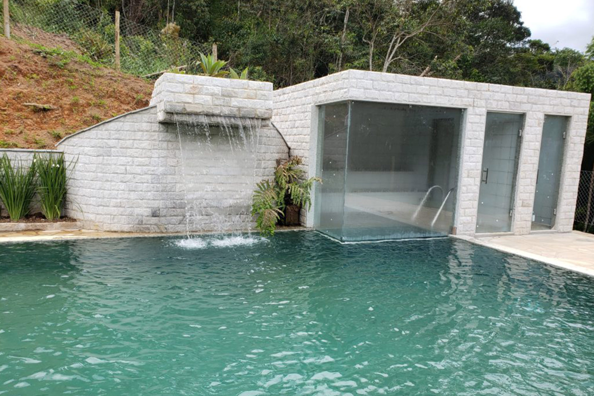 A Casa de Pedra conta com sala de estar, uma adega, cozinha, lavanderia, lareira, biblioteca, sauna seca, forno à lenha, fogão à lenha e a gás, comuns aos usuários da Sede, e possui duas suítes para hospedagem. Além disso, conta com três banheiros sociais.